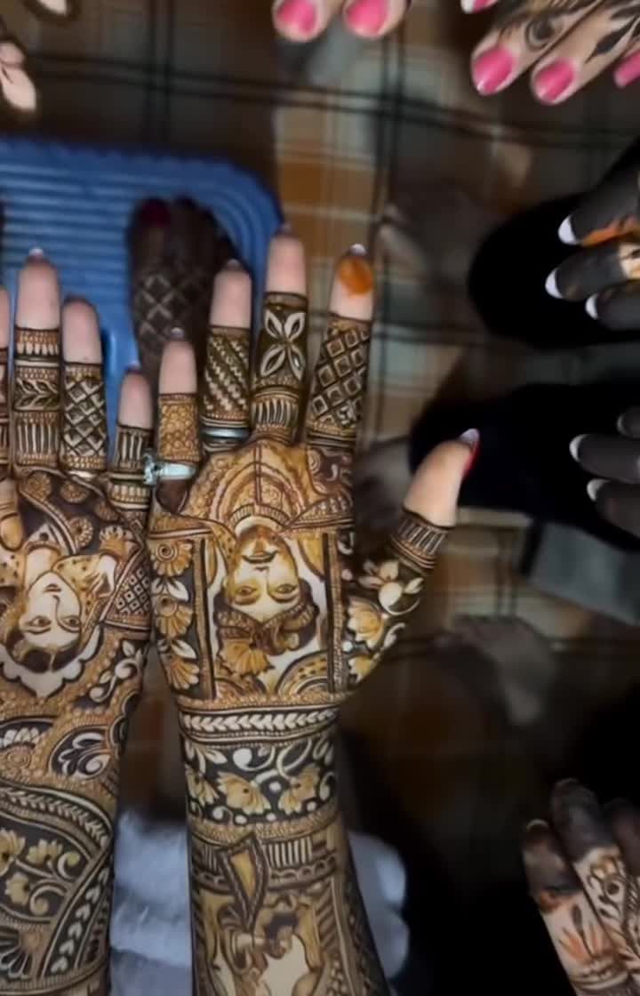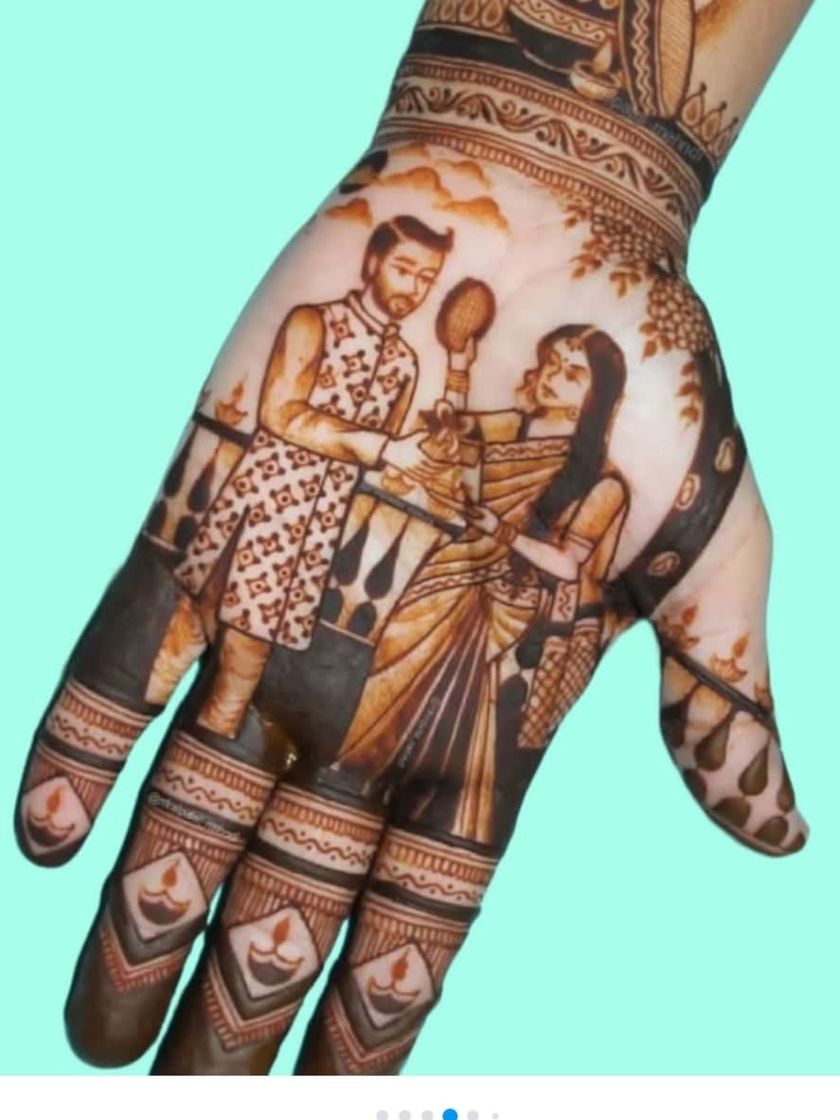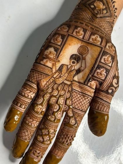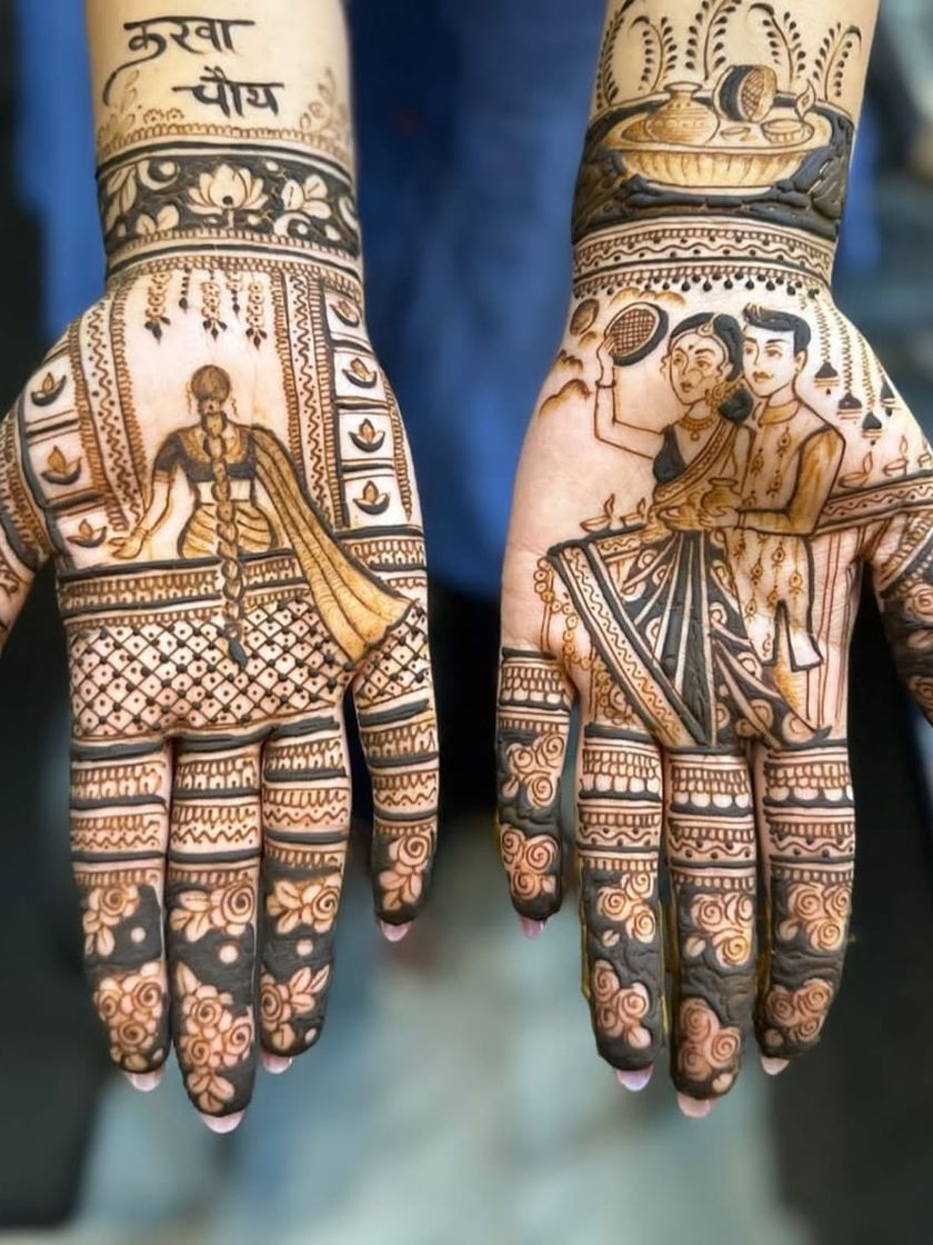 This is where mehandi becomes storytelling. I specialize in creating custom figures and portraits, from religious deities like Lord Shiva to fun pop-culture characters. If you have a unique idea, I can draw it for you with my henna cone, making your mehandi a true piece of art.