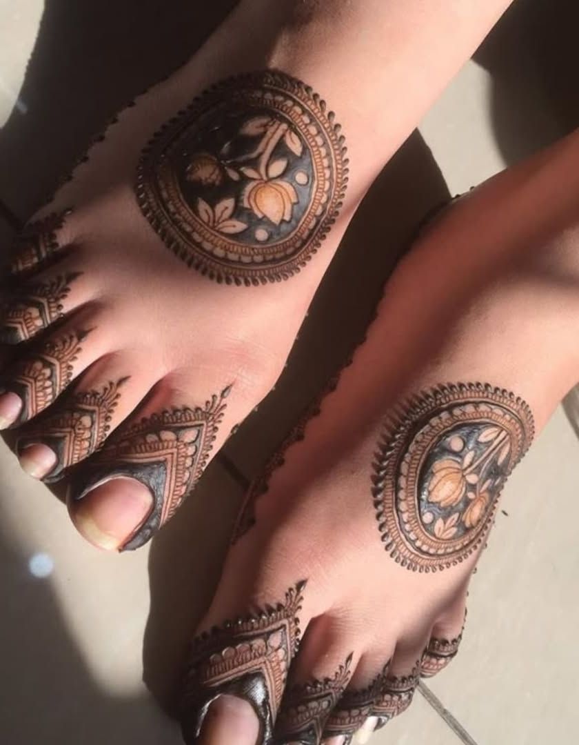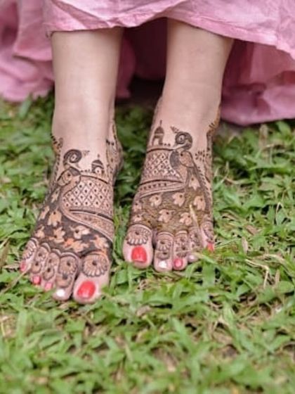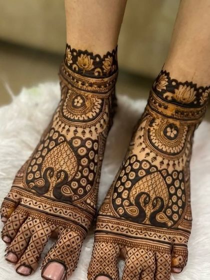 Don't forget your feet! A beautifully decorated pair of feet completes the festive or bridal look. I create all styles for feet, from simple patterns that mimic anklets to full-coverage designs that are as detailed as the work on your hands.