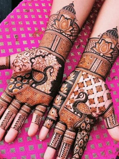 I have mastered the classic art of Indian mehndi, from majestic peacocks and elephants to delicate lotus flowers and intricate jaal net patterns. These timeless designs are perfect for any festive occasion and are always a popular choice for brides and guests.