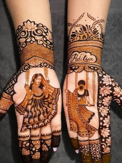 Your story is unique, and your mehndi should be too. I specialize in creating custom portraits of couples, deities like Radha-Krishna, and personal symbols that tell your story. Whether it's your wedding date, initials, or a special memory, I can draw it for you.