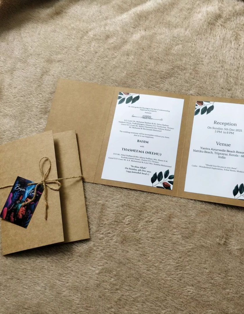 Embrace a natural and heartfelt aesthetic with our handmade invitations. We use earthy materials like jute, kraft paper, and twine, often accented with delicate lace or custom wooden tags, to create invitations that feel personal, warm, and one of a kind.