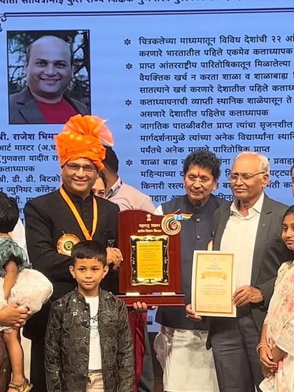 Namaskar, I’m Rajesh Sawant. My Nana and my Guruvarya shaped how I see art, but my heart beats for my mom. She’s the reason I am who I am – I miss her every day. I paint to keep our aitihasik sanskriti (historical culture) alive, with portraits of Shivaji Maharaj, Prabhu Ram, and freedom fighters. Winning awards abroad is nice, but nothing beats the pride I feel as a kaladhyapak (art teacher) in Nashik, when my students shine.