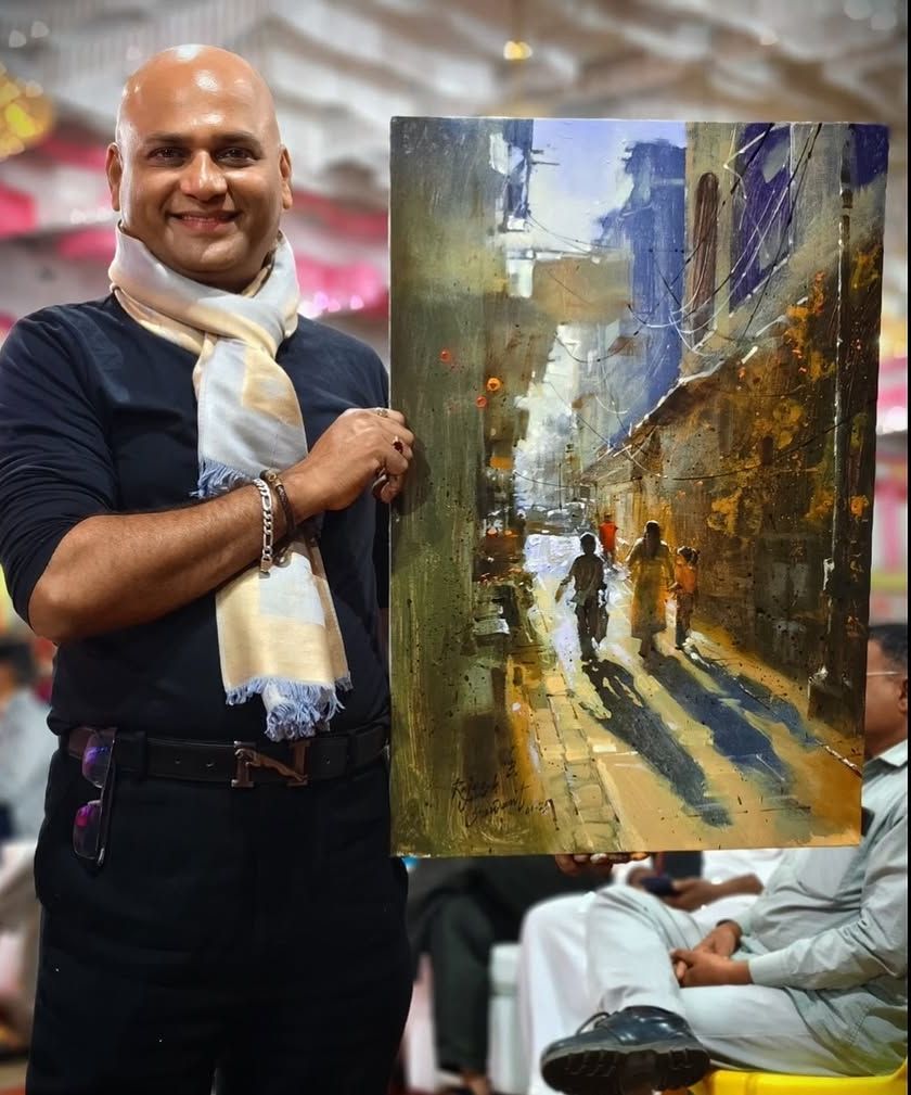 I love capturing the unique atmosphere of different places, from the sacred ghats of Nashik to historic cityscapes. I work in both watercolor and acrylics, often painting live on location to truly capture the light and energy of the moment.