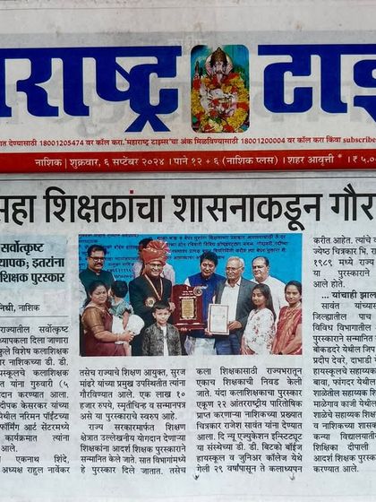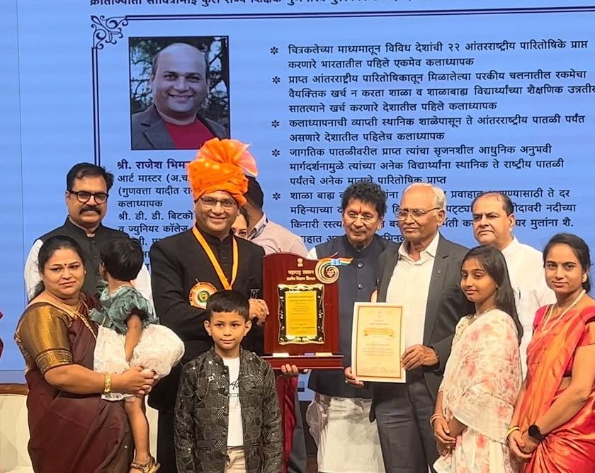 I am deeply grateful for the recognition my work has received. This includes the prestigious 'Krantijyoti Savitrimai Phule State Teacher Award' for Best Art Teacher, having my paintings permanently installed in the Mantralay, and being invited to serve as a jury member for international art competitions.