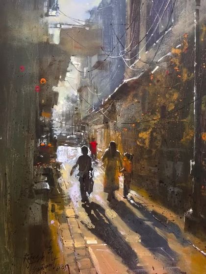 I travel to historical forts, ancient temples, and scenic ghats to paint on-site. This practice, known as plein air painting, allows me to capture the true essence, light, and atmosphere of a place as it happens, creating a direct and honest connection with the subject.