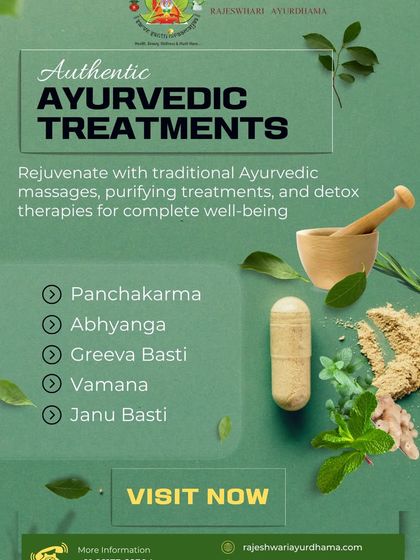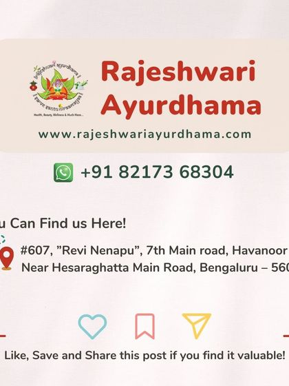 Namaste. We built Rajeshwari Ayurdhama to be a space where you slow down, breathe, and heal. Bengaluru is crazy busy, stress everywhere—so we went back to Ayurveda, our roots. Our clinic, Revi Nenapu (memory), is all about bringing that old wisdom to daily life. We listen, really listen, whether you talk in Kannada or English. People say our staff are like friends, and treatment? 100% result sikkē siguttē (guaranteed). It’s not just medicine, it’s life changing.