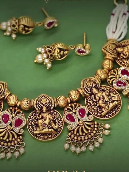 This collection is inspired by Indian divinity and royal heritage, featuring sacred symbols like Goddess Lakshmi and the majestic peacock. Each piece is handcrafted to be more than an ornament; it is a blessing and a story sculpted in antique gold.