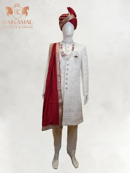 Custom Designs & Premium Fabrics - Get custom Sherwani designs, with fine fabrics from Raymond and Siyaram's. Tailored, never generic.