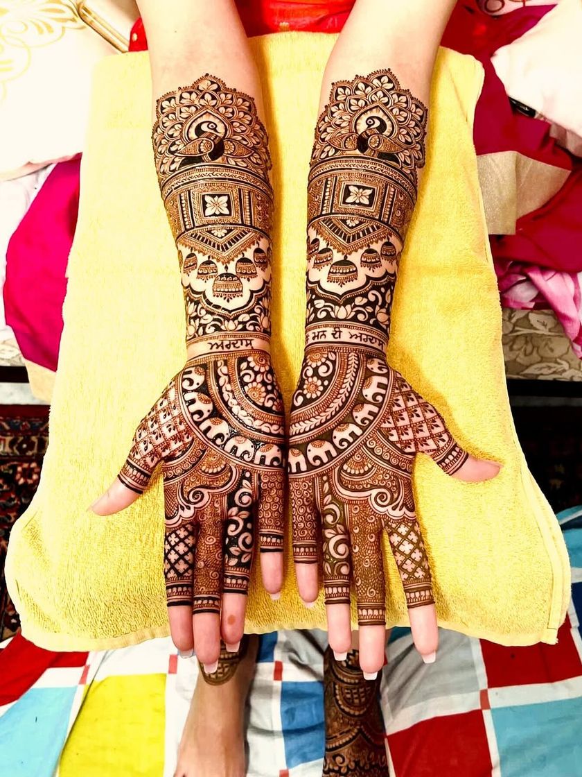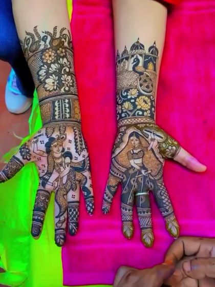 For me, every design has a story. I love creating custom portraits and scenes that capture the essence of your special day. Whether it's a depiction of Radha and Krishna, a scene from the Karwa Chauth ritual, or a portrait of you and your partner, I can bring your vision to life in henna.