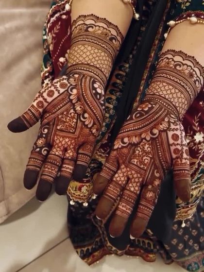 This is the first glimpse clients get of my work. I've selected a range of my most impactful designs that showcase the breadth of my artistry, from intricate bridal patterns to unique storytelling mehndi. Each piece is crafted with passion and my own 100% natural henna.