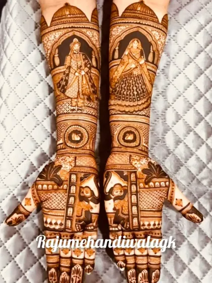 With over 25 years of experience, I specialize in telling a bride's story through intricate mehendi. I create detailed portrait designs and traditional motifs, always focusing on achieving a beautiful, deep henna stain.