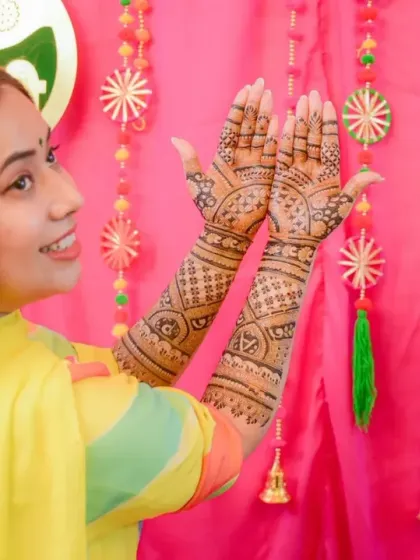I design festival mehendi with custom motifs and portraits for Karwa Chauth, Janmashtami, Ganesh Chaturthi, and more, so you get exactly the look and story you want for any celebration.