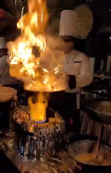 - Fire Pasta Station: Penne/Fusilli in Red & White sauce prepared with flambé effect.