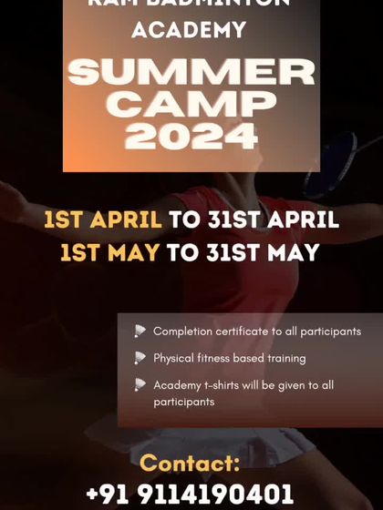 We offer an intensive badminton training camp scheduled for April and May. The program includes expert coaching, skill-appropriate drills, friendly competitions, and fitness-based training. Each participant receives a completion certificate and academy t-shirt.