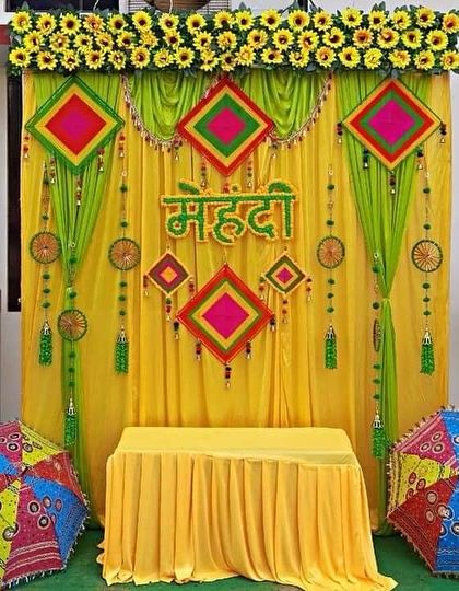 Traditional Touches - Love adding traditional mehndi backdrop, grand haldi entrances, and baby shower banner decoration for that special vibe.