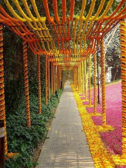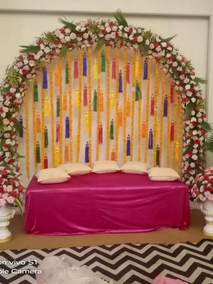Traditional Touches - Love adding traditional mehndi backdrop, grand haldi entrances, and baby shower banner decoration for that special vibe.