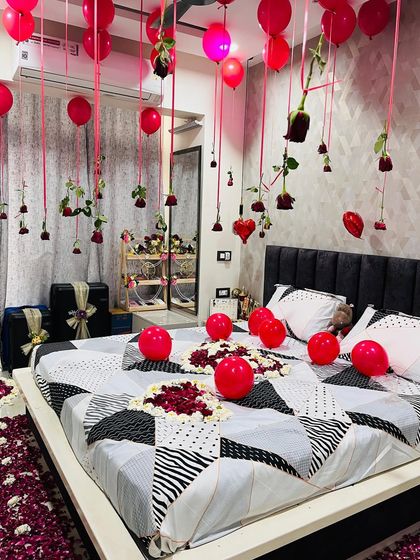 This is my classic and most popular decoration package, perfect for making any occasion unforgettable. I handle everything to turn a regular bedroom into a private, romantic retreat, focusing on a rich, celebratory feel with balloons, fresh flowers, and petal arrangements. This setup is ideal for wedding nights, anniversary celebrations, or special proposals.