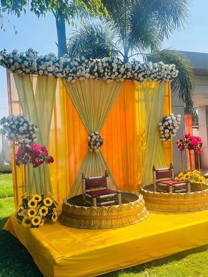 Style Within Your Budget - We make your event look elegant without emptying your wallet. Balloon decor starts at 1299, haldi decor Noida from 6k.