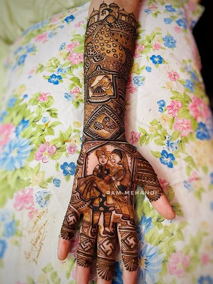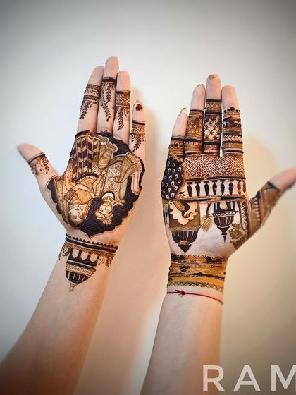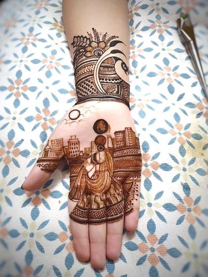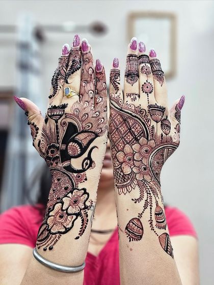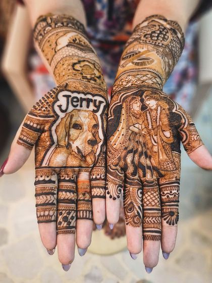 I'm a Delhi-based mehndi artist who tells your story through custom designs, from couple portraits to something more edgy. I use 100% natural henna and guarantee a deep, dark color.