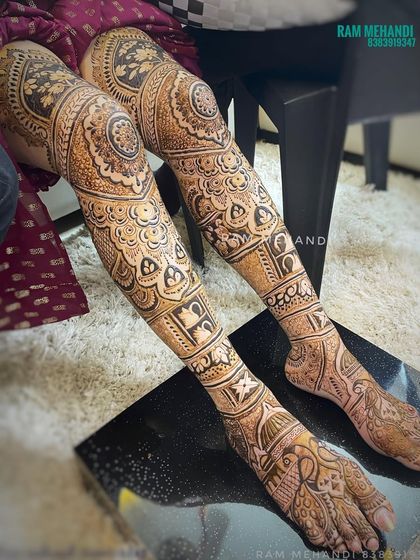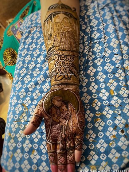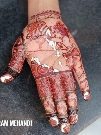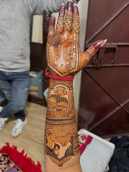 I make custom portrait mehndi with your ideas, using natural paste and deep colour, and I come to your home anywhere in Delhi NCR.