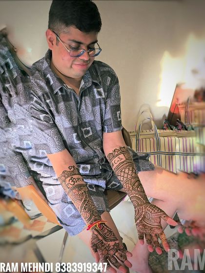 I do groom mehndi with 100% natural henna, offering both full coverage and simple designs, and I can include family or friends too.