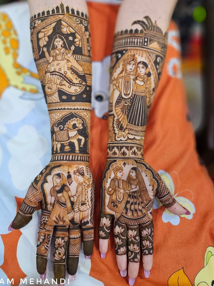 I focus on capturing your love story. From romantic couple poses and varmala ceremonies to detailed portraits of the bride and groom, I draw your most precious moments right on your hands.