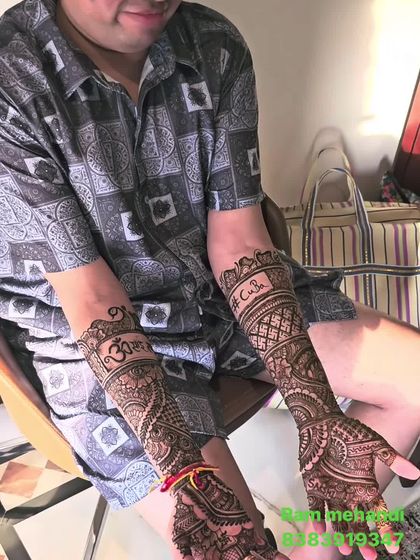 This is the first thing a potential client sees. I've selected these visuals to showcase the full range of my skills, from bold, full-coverage work to simple, symbolic designs, proving that groom mehndi is all about personality.