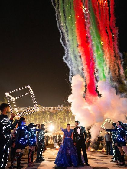 I turn every entry into a blockbuster moment, from the Sangeet and Haldi to the Varmala. I handle the complete artistic direction, using backup dancers, cold pyros, confetti, and custom music to make it unforgettable.