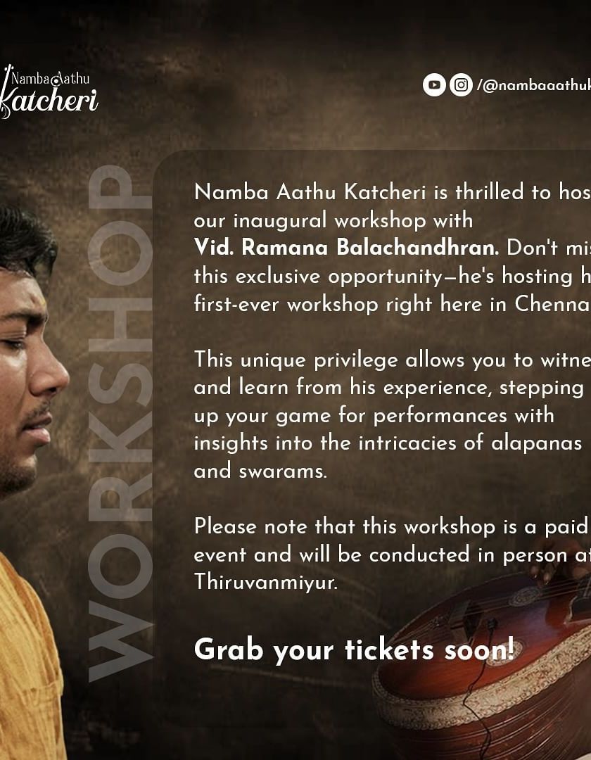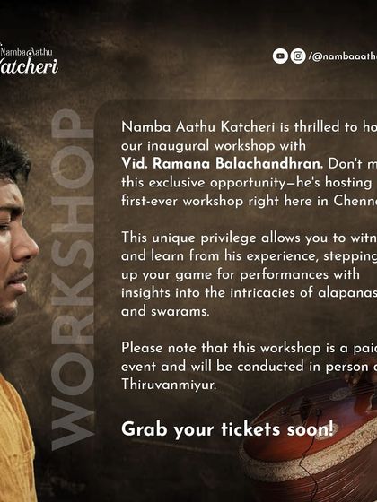 My workshops, both online and in-person, are interactive sessions for all Carnatic musicians. We move beyond theory to explore practical techniques for improvisation in Alapana and Swarakalpana, composition analysis, and finding the sweet spot where structure and emotion meet.