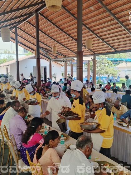 Namaskara, I’m Ramesh Gowda. Started small in ‘96, just me and a few cooks, serving food for 25-30 folks. Now, we feed lakhs! Still, I’m always there, checking every plate myself. No staff changes - same trusted hands for 30 years. Quality and taste, that’s our backbone. Even met Dr. Rajkumar once, proud moment. My journey’s all about trust, good food, and serving with heart.