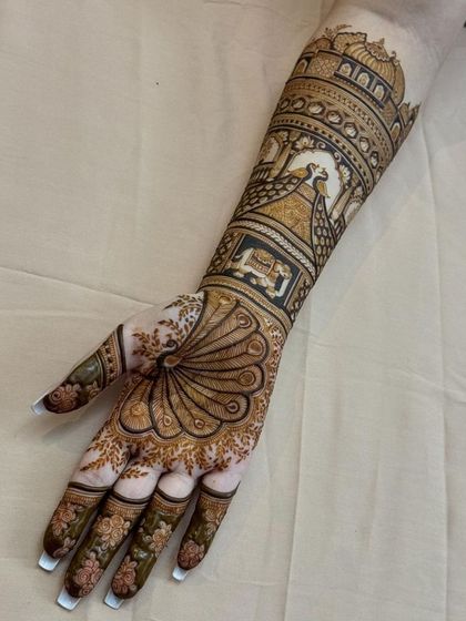 Your hands can tell the story of your wedding day. I specialize in creating detailed scenes of your most important ceremonies, including the baraat, varmala, pheras, sindoor, and doli, making your mehandi a beautiful narrative of your love.