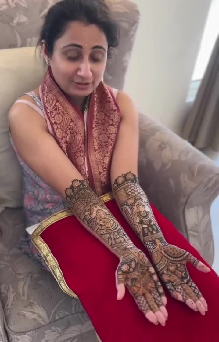 Your love story, drawn on your hands. I specialize in creating personalized bridal mehndi, featuring couple portraits, wedding scenes like the varmala or doli, and important dates to make your design truly one of a kind.
