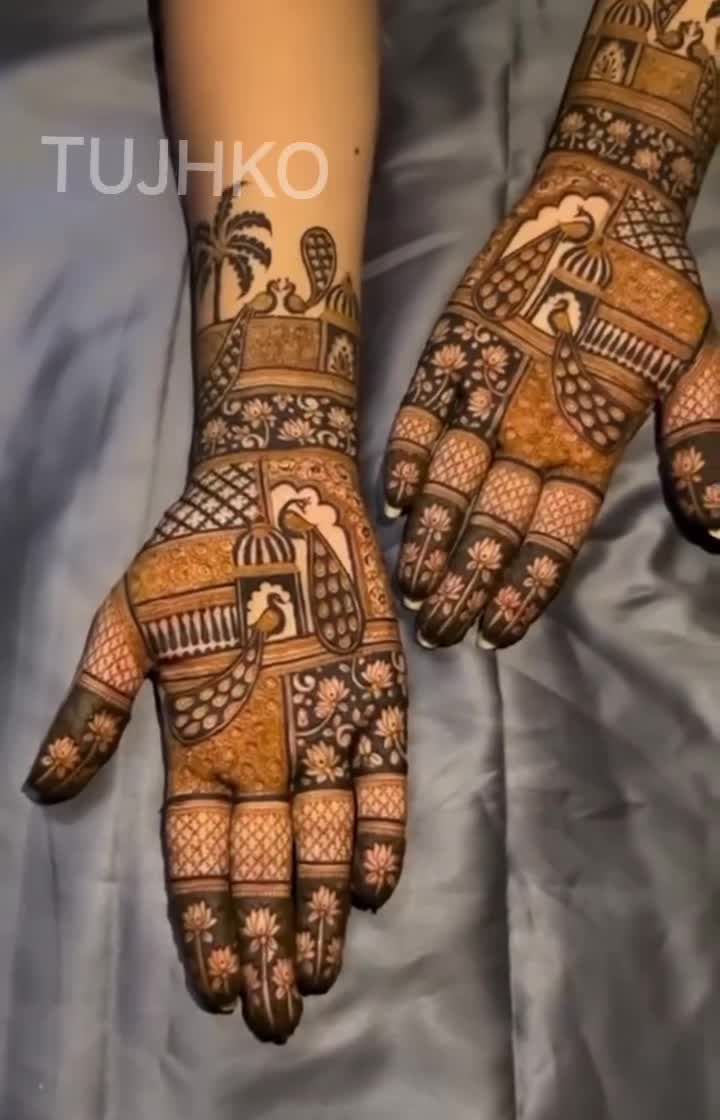 I love the richness of dense, traditional patterns that fill the hands with beauty. This collection features classic Marwadi and Rajasthani styles, including motifs like elephants, peacocks, palaces, and detailed geometric jaal (grid) work.