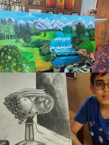 Hey, we’re RangSangam Art School. Painting is our chill pill, really. Nothing beats that calm after finishing something huge, like our 6x7 feet Pichwai painting - pura maza aaya (it was pure fun). Started RangSangam to spread this joy. Our studio’s not just ours, it’s a place for everyone - teens, adults, even retired doctors and officers. We’ve got folks joining online from Poland, Germany, Spain, all learning with us. Seeing students grow, like one who now teaches art in Bengaluru, makes us super proud. We just want you to find your creative spark.