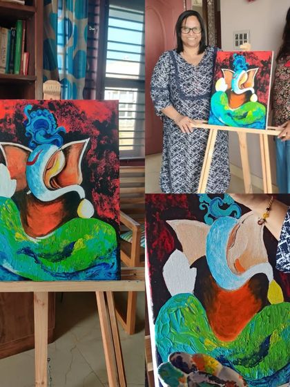 We create and sell original paintings in various styles including Indian mythology, abstract, and nature, and offer custom commissions in your choice of subject, medium, and size with shipping across India.