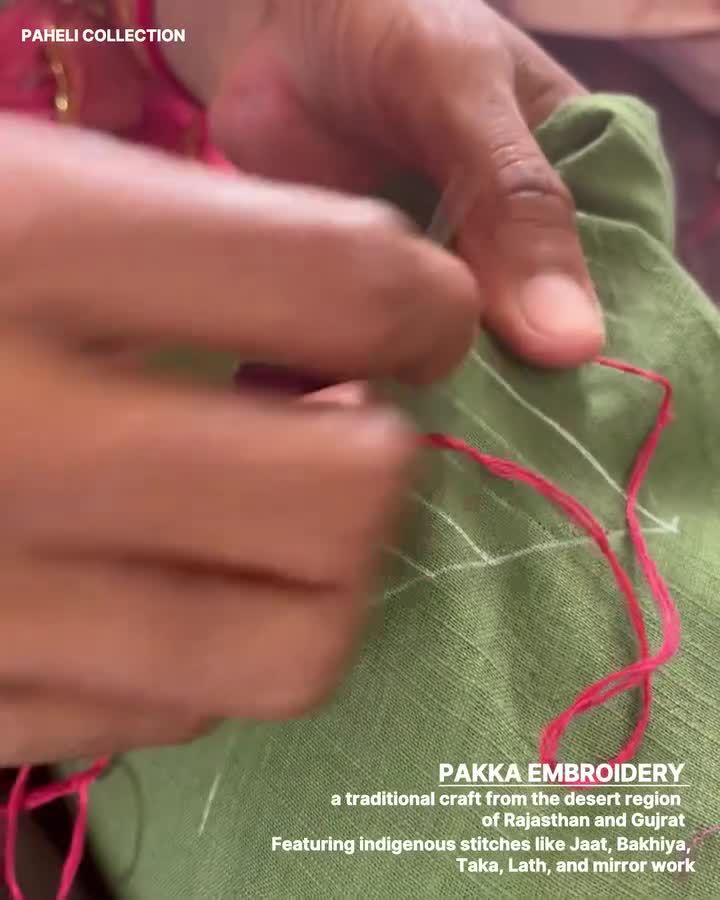 We honor old-school techniques, using no machines or shortcuts. This is a look into the patience and skill behind our crafts, from hand-weaving and natural dyeing to the intricate stitches of our embroidery traditions like Pakka, Soof, and Kharek.