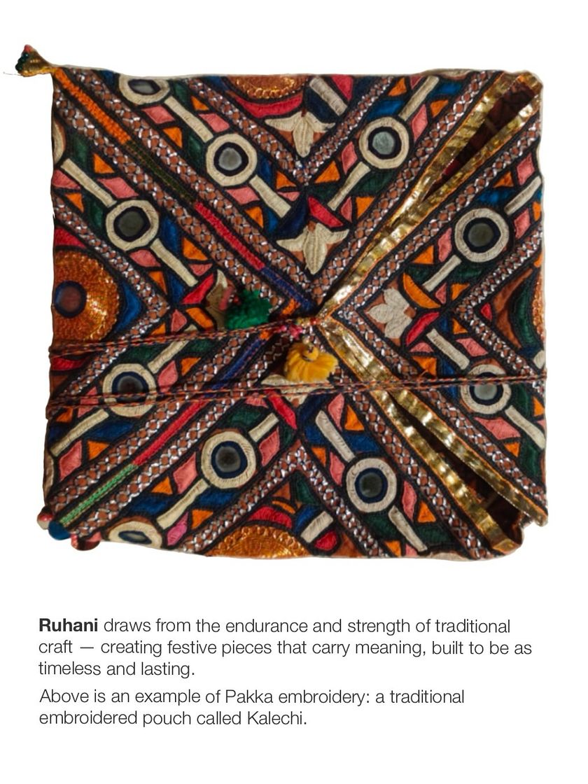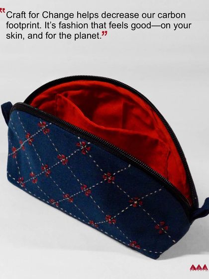 Discover our range of artisan-embroidered pouches, toiletry kits, and quilted travel bags. Designed for daily use, each piece combines traditional crafts like Pakka and Kantha embroidery with practical, durable design using upcycled fabrics.
