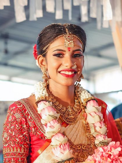 My favourite thing? Creating the perfect South Indian bridal look - think Kanjeevaram saree, traditional jewellery, lots of malligai (jasmine). But I don’t stop there: