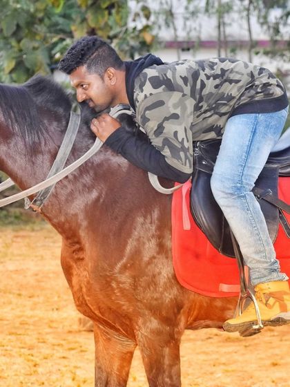 I teach horse riding to beginners of any age, help with problem horses, and give lessons in Kannada, all using safe and trust-based methods without hitting.