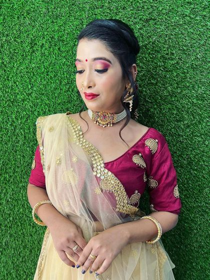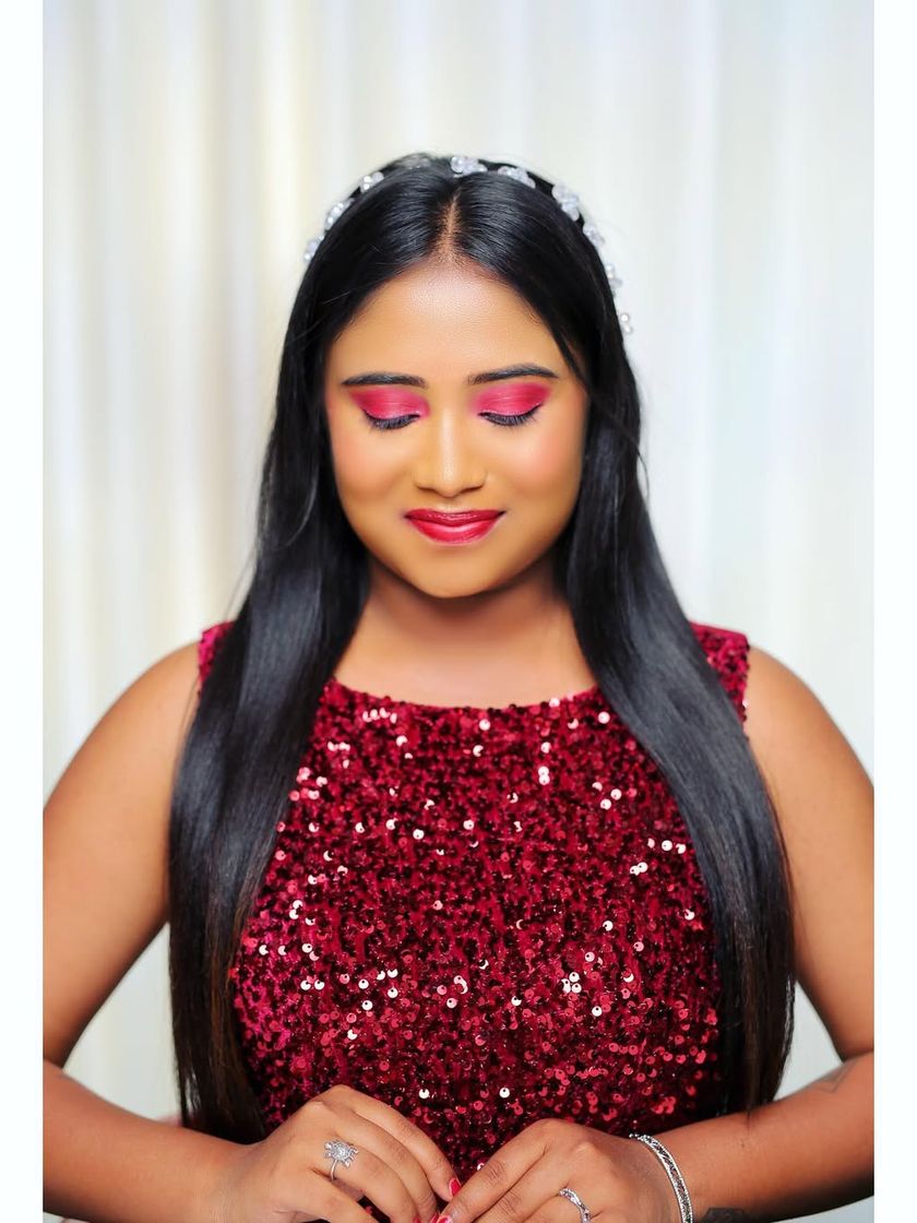 I specialize in creating stunning makeup and hair for wedding guests and festive functions, catering to both South and North Indian styles. My focus is on complementing your traditional attire with elegant makeup, from bold lips to intricate eye work.