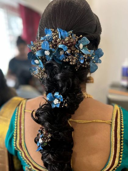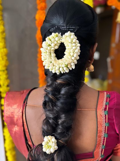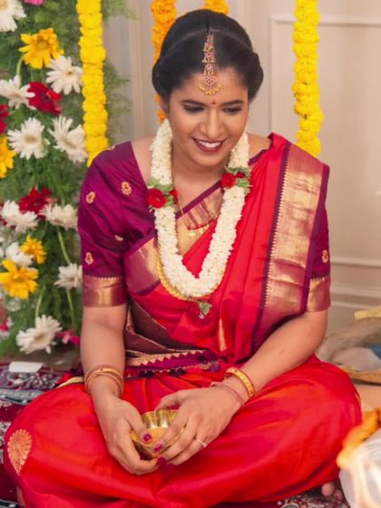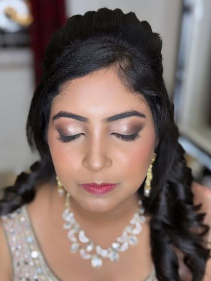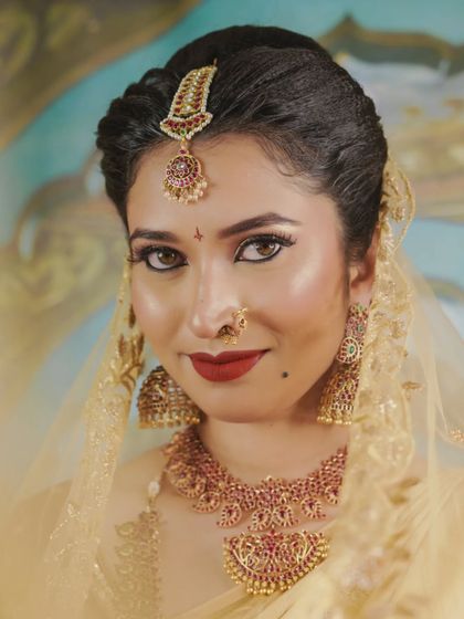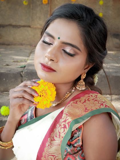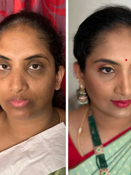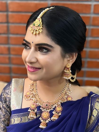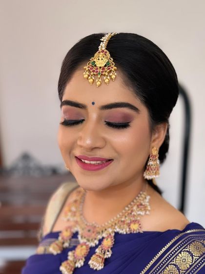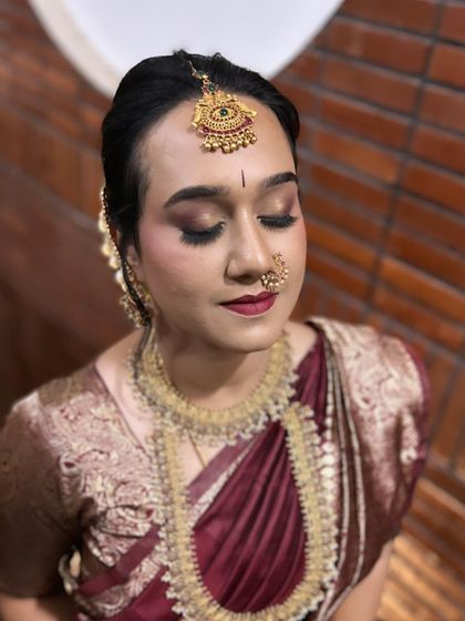 I do South Indian bridal makeup with long-lasting, lightweight products and help plan your full look, including saree draping and matching every detail to your wedding events.
