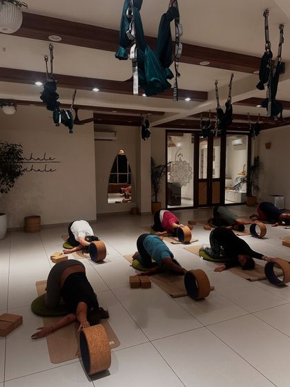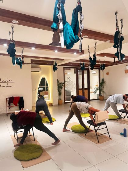 Our Offerings - We do Hatha, Aerial, Wheel, Stick, Chair, Partner and Kids Yoga, chakra balancing sessions, sound healing meditation, pranayama, diet consults, and community circles.