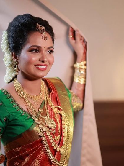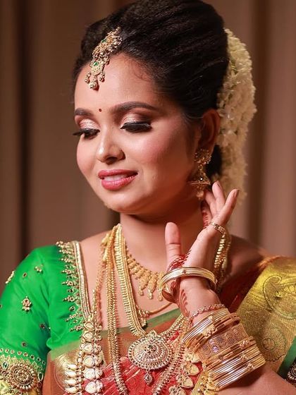 I help you choose and try bridal makeup, hair, and draping that match your style and tradition, with full support from planning to final touch, so you look like yourself on your wedding day.
