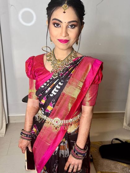 I do makeup, hair styling, and saree draping for any special event, so you get a complete look without booking multiple people.