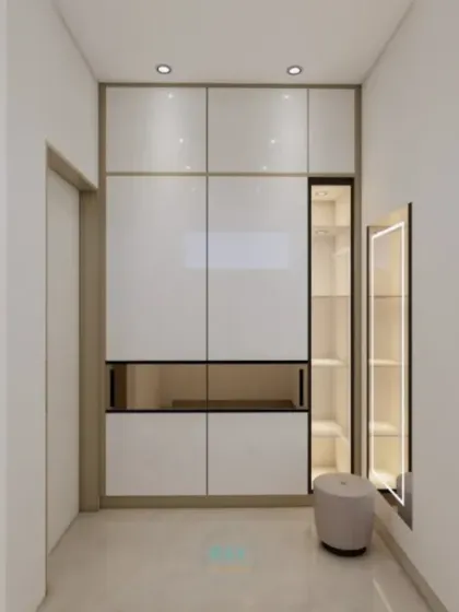 We believe that the entrance to your home and its spiritual corner should be designed with special care. We create serene pooja units that blend tradition with modern aesthetics, and welcoming foyers that make a lasting first impression. Explore our designs featuring intricate woodwork, elegant lighting, and thoughtful details.