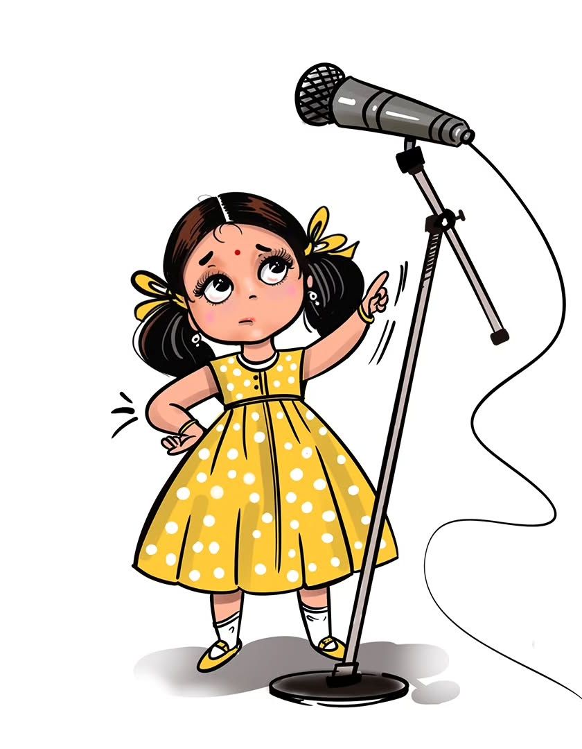 Beyond portraits, I also design unique characters and create narrative illustrations. This includes commercial work like the mini cartoon character for 'Aiyyo Shradha' and other imaginative scenes that tell a story.