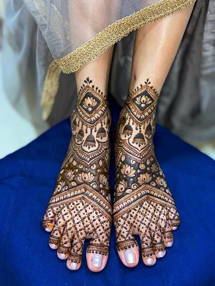 Hey, I'm Ravina. Mehandi is my thing – you know, the kind that speaks for itself. Mumbai is home, and I go all out with my heena, whether it’s a full-on bridal story or something sweet for a baby shower, like ‘Aai’ ‘Baba’ in the design. The best part? When the stain sets and my client grins. That’s my staingoal.