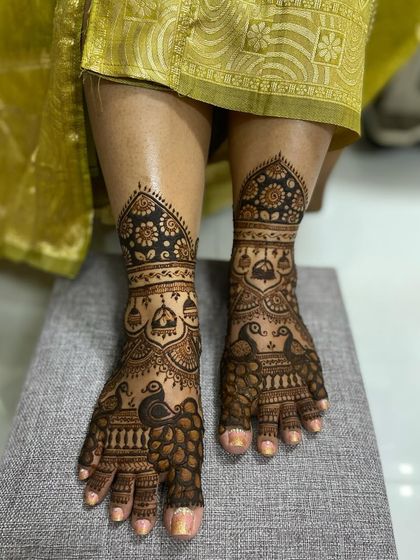 Complete your festive or bridal look with intricate mehandi on your feet. I design everything from simple, elegant trails and mandalas to full-coverage patterns that complement your hand mehandi.
