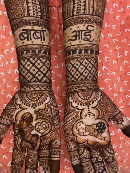 This is one of my favorite events to design for. I create personalized mehandi to celebrate your journey to motherhood, incorporating names, dates, portraits of the parents-to-be, and cute motifs like baby footprints, cradles, or toys. We can make it as grand or as simple as you like.