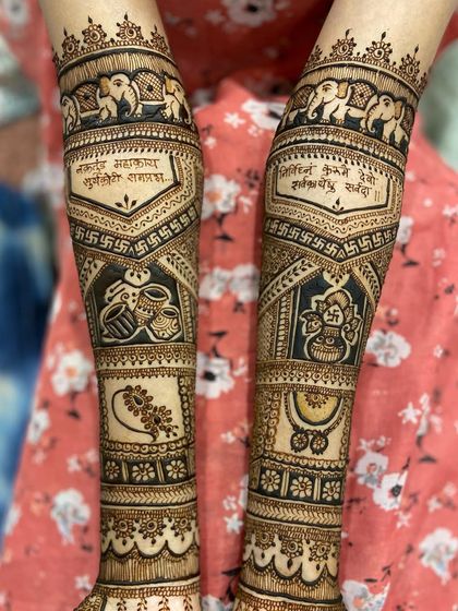 This is the first thing a potential client will see. I've selected these designs to showcase the range and quality of my work, from highly personalized story-telling mehandi to elegant guest designs. Each piece is chosen to highlight my skill and creativity.